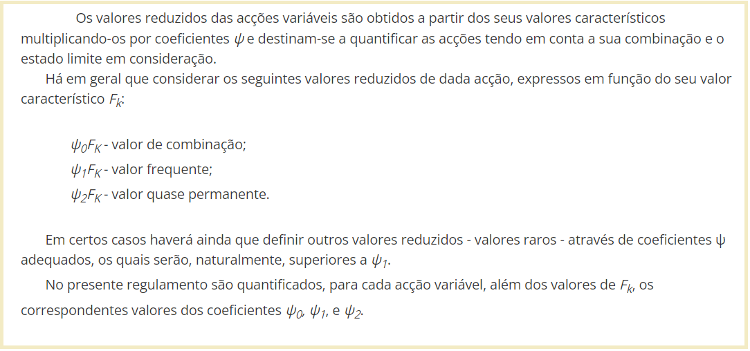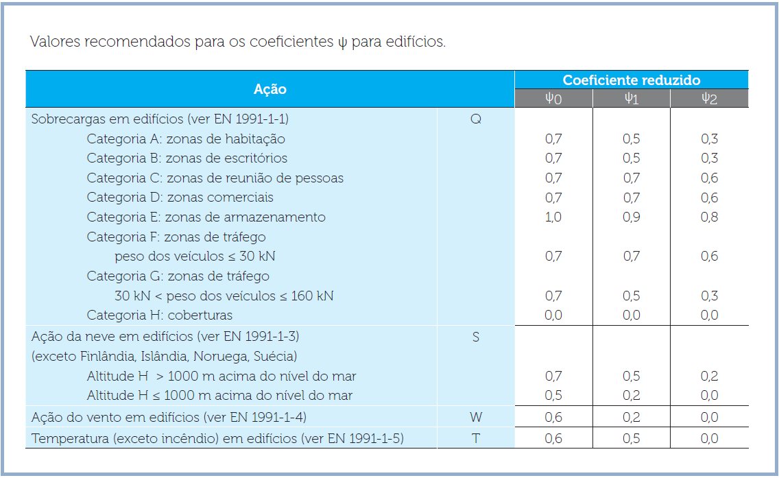 # o valor do Psi0, Psi1, Psi2, de acordo com o Eurocódigo