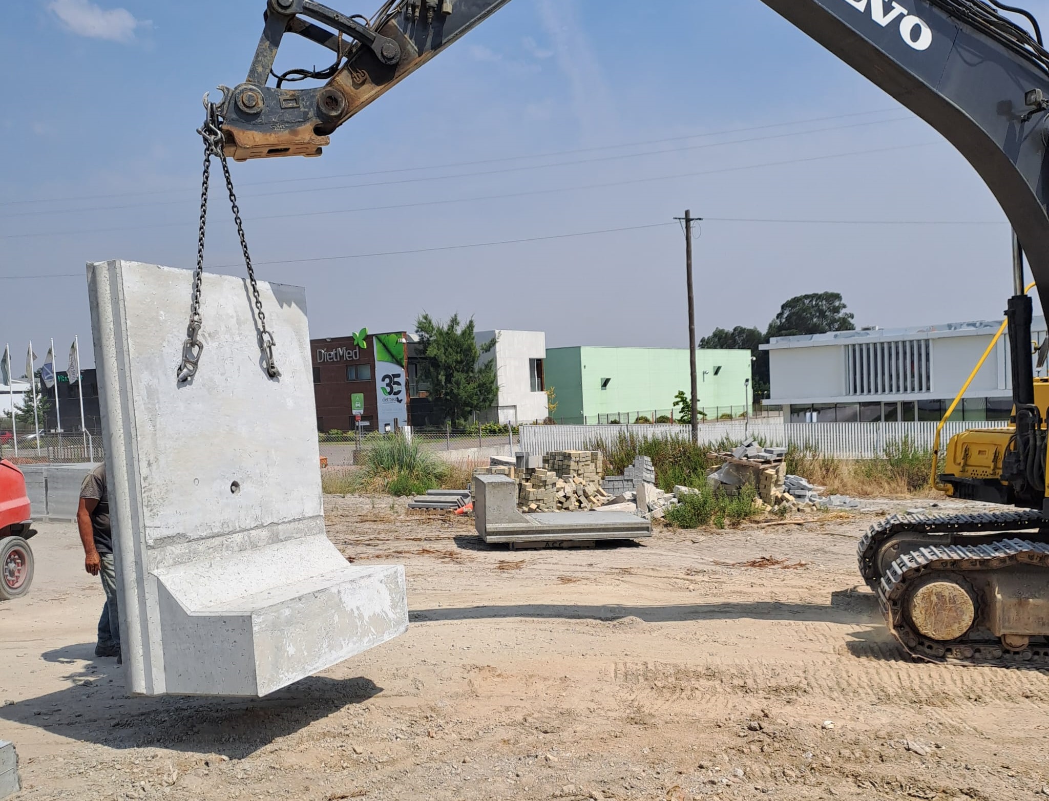 Elemento de Betão com armadura de elevada resistência e estabilidade destinado à execução de muros de contenção e de separação.
